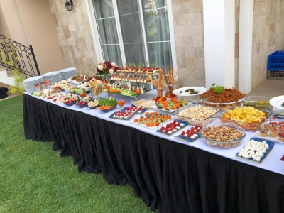 - Aperatifler: Atıştırmalıklar, çeşitli mezeler veya tabaklar hazırlayın. Mutfak ekibi veya catering hizmeti alabilirsiniz.